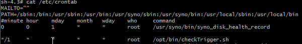 The trigger checker script /opt/bin/checkTrigger.sh is called by cron every minute.